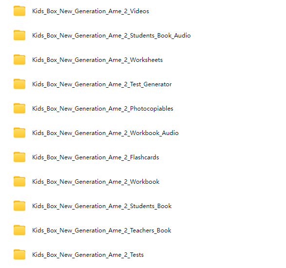 Kid’s Box 包含学生书,练习册,练习卷,教师用书,音频,视频,闪卡,测试卷等(其中starter暂无练习册)