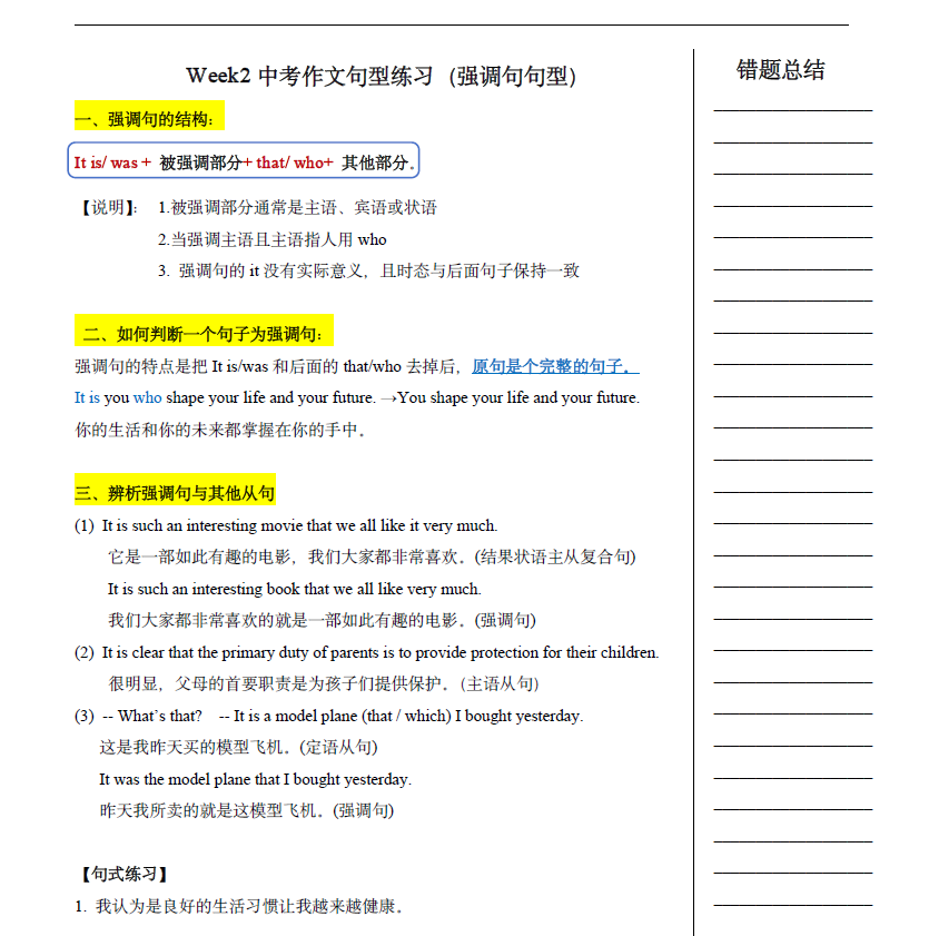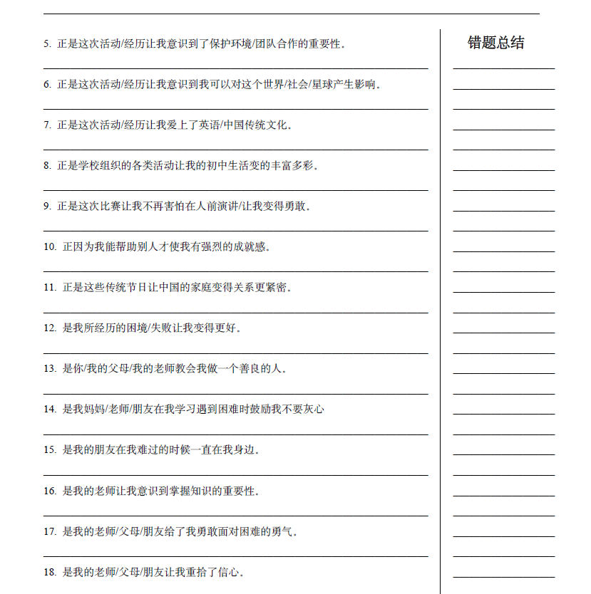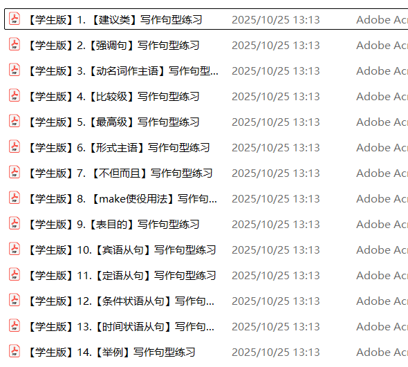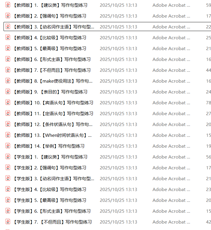 我的小孩的成长分享 » 2025中考英语写作句型练习资料 14个主题 学生版+教师版 28个PDF