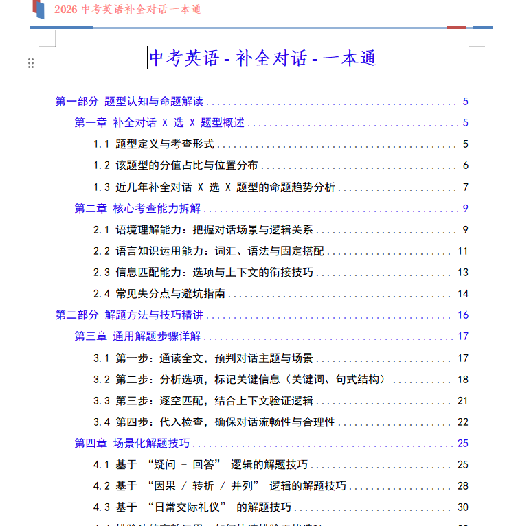 《中考英语补全对话-一本通》聚焦“X选X专项”,打造“场景化+逻辑化”的解题模型: