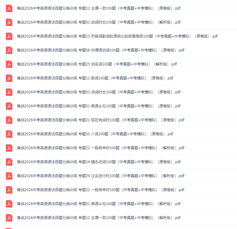 我的小孩的成长分享 » 备战2026中考英语语法百题分类训练 (中考真题+中考模拟)29个专题+语法填空