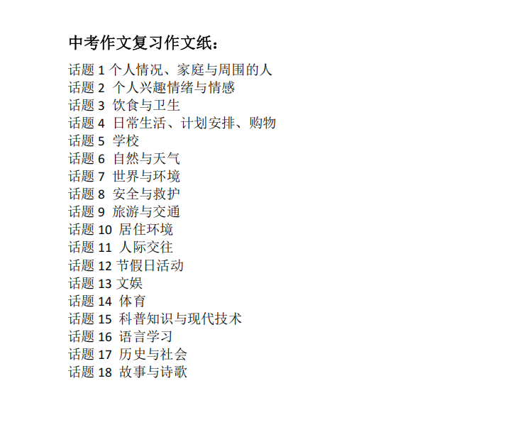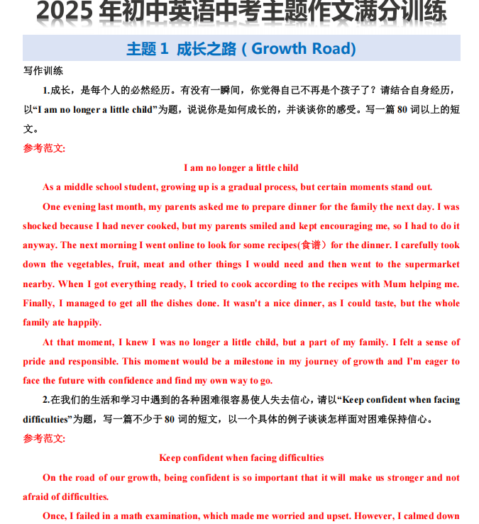 我的小孩的成长分享 » 2025年初中英语中考主题作文满分训练 18个话题 PDF+WORD