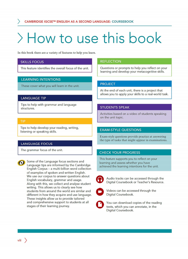 IGCSE English as a Second Language (ESL) Coursebook 第6版 是IGCSE课程中的英语作为第二语言科目,专为母语非英语的学生设计,旨在提高学生的英语水平以适应英语国家的学习和生活。